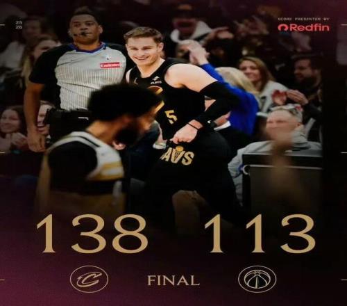 而骑士则主场以138-113大胜奇才25分