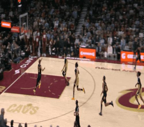 梅里尔自己和加雷特·阿伦二人转投了一个,信心出来了;哈登反击,喂梅里尔突破上篮打三分。